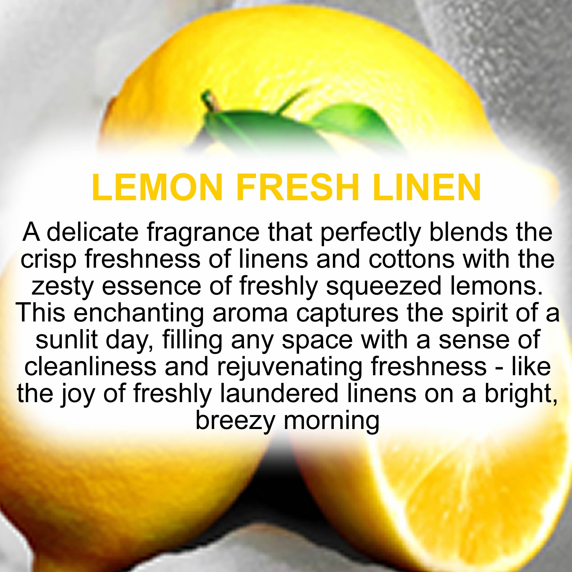 A delicate fragrance that perfectly blends the crisp freshness of linens and cottons with the zesty essence of freshly squeezed lemons. This enchanting aroma captures the spirit of a sunlit day, filling any space with a sense of cleanliness and rejuvenating freshness - like the joy of freshly laundered linens on a bright, breezy morning