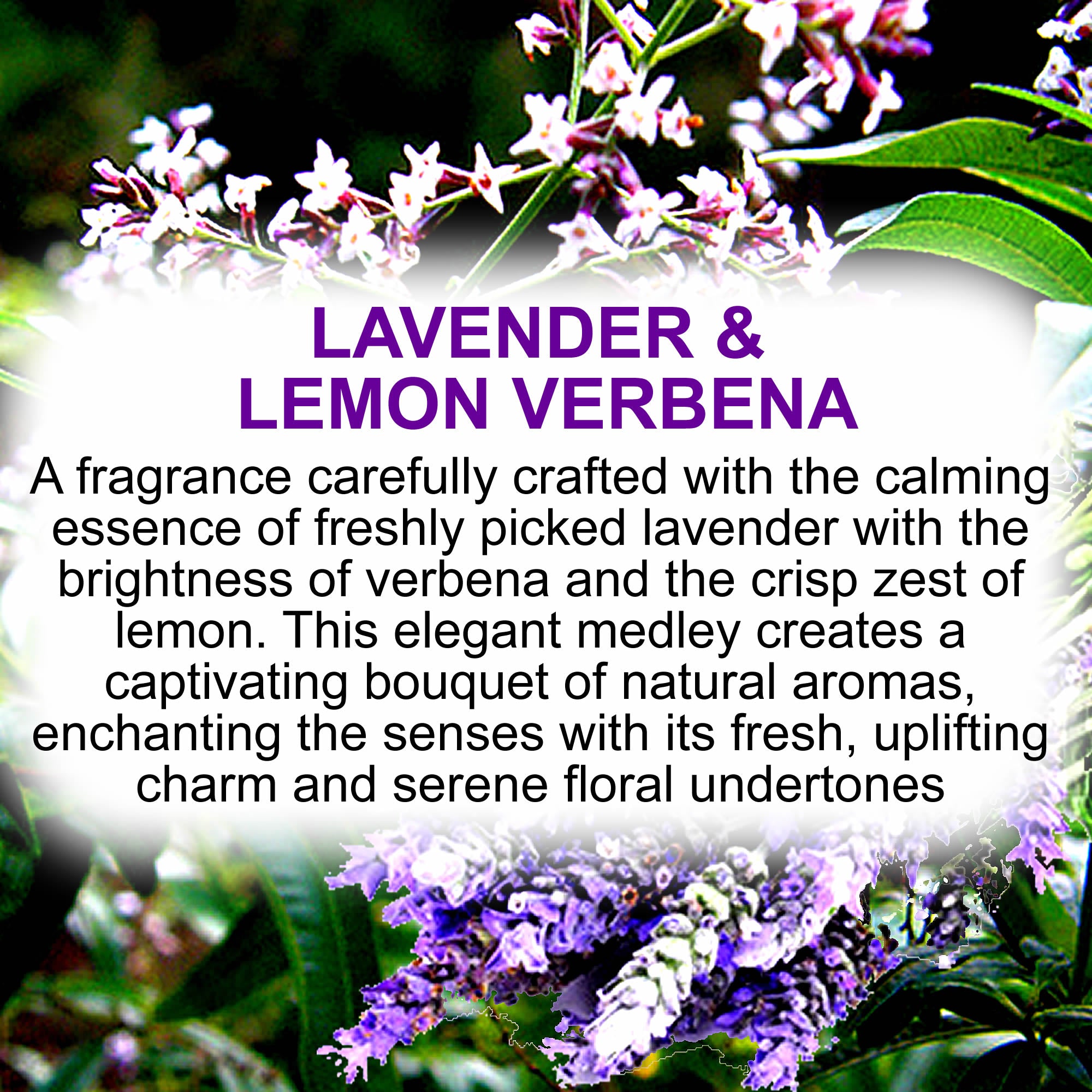 An exceptional fragrance, carefully crafted to blend the calming essence of freshly picked lavender with the exotic brightness of verbena and the crisp zest of lemon. This elegant medley creates a captivating bouquet of natural aromas, enchanting the senses with its fresh, uplifting charm and serene floral undertones