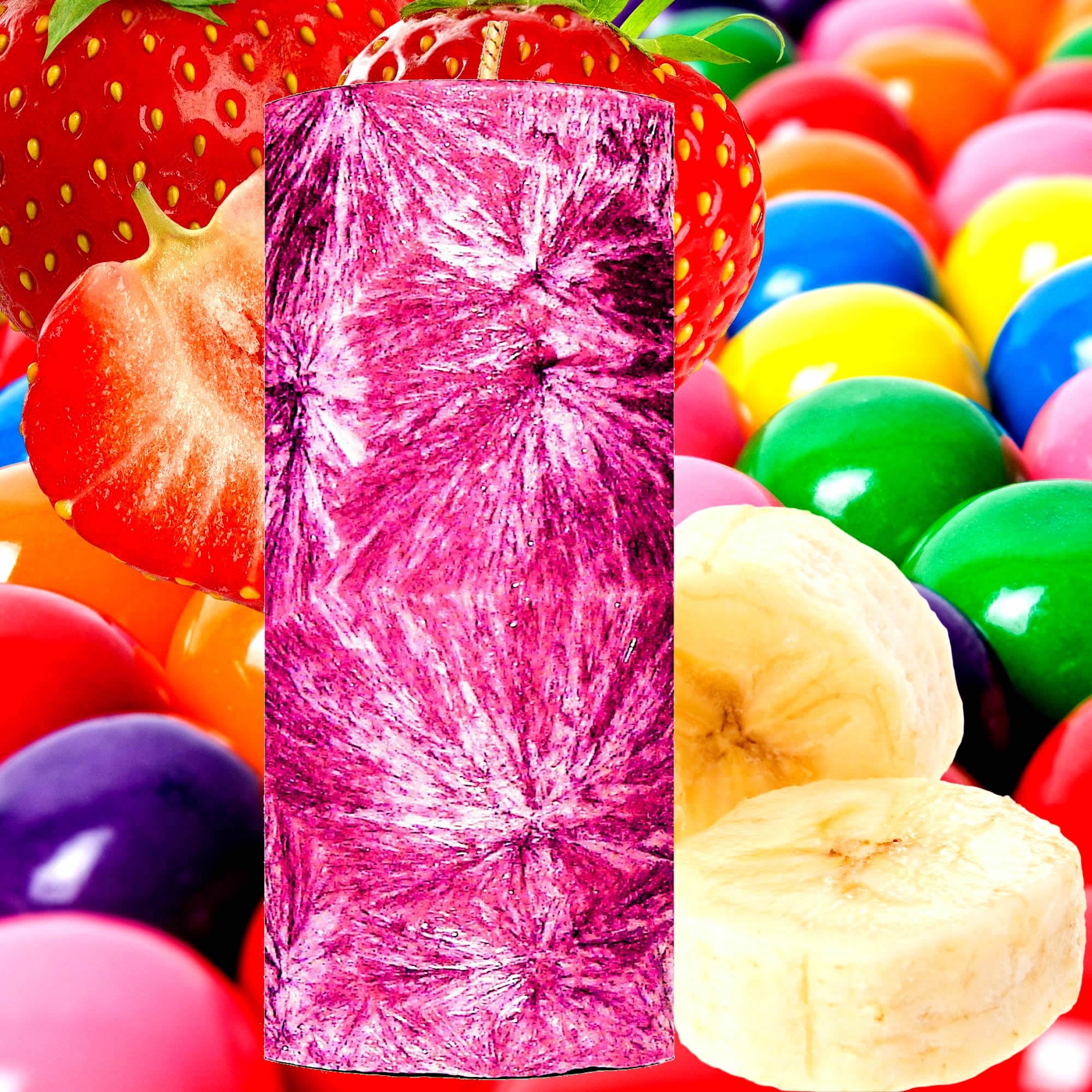 A fun and delightful fragrance that bursts with the sweet charm of bubblegum, blended with juicy red strawberries and a tangy splash of grapefruit. A tropical twist of ripe bananas and creamy vanilla adds a smooth, indulgent finish, creating a fruity paradise that's both playful and luxurious. This whimsical scent brings a splash of joy and carefree energy
