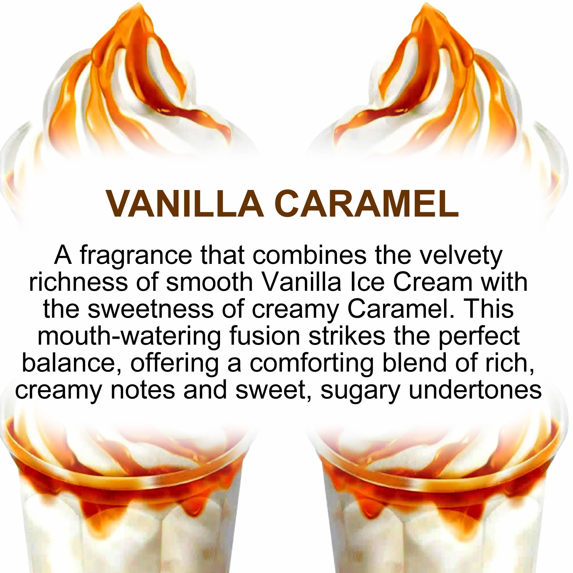 A delectable fragrance that combines the velvety richness of smooth Vanilla Ice Cream with the indulgent sweetness of creamy Caramel. This mouth-watering fusion strikes the perfect balance, offering a comforting blend of rich, creamy notes and sweet, sugary undertones. It's an irresistibly sweet and utterly crave-worthy fragrance, perfect for those who enjoy the warmth of dessert-inspired scents