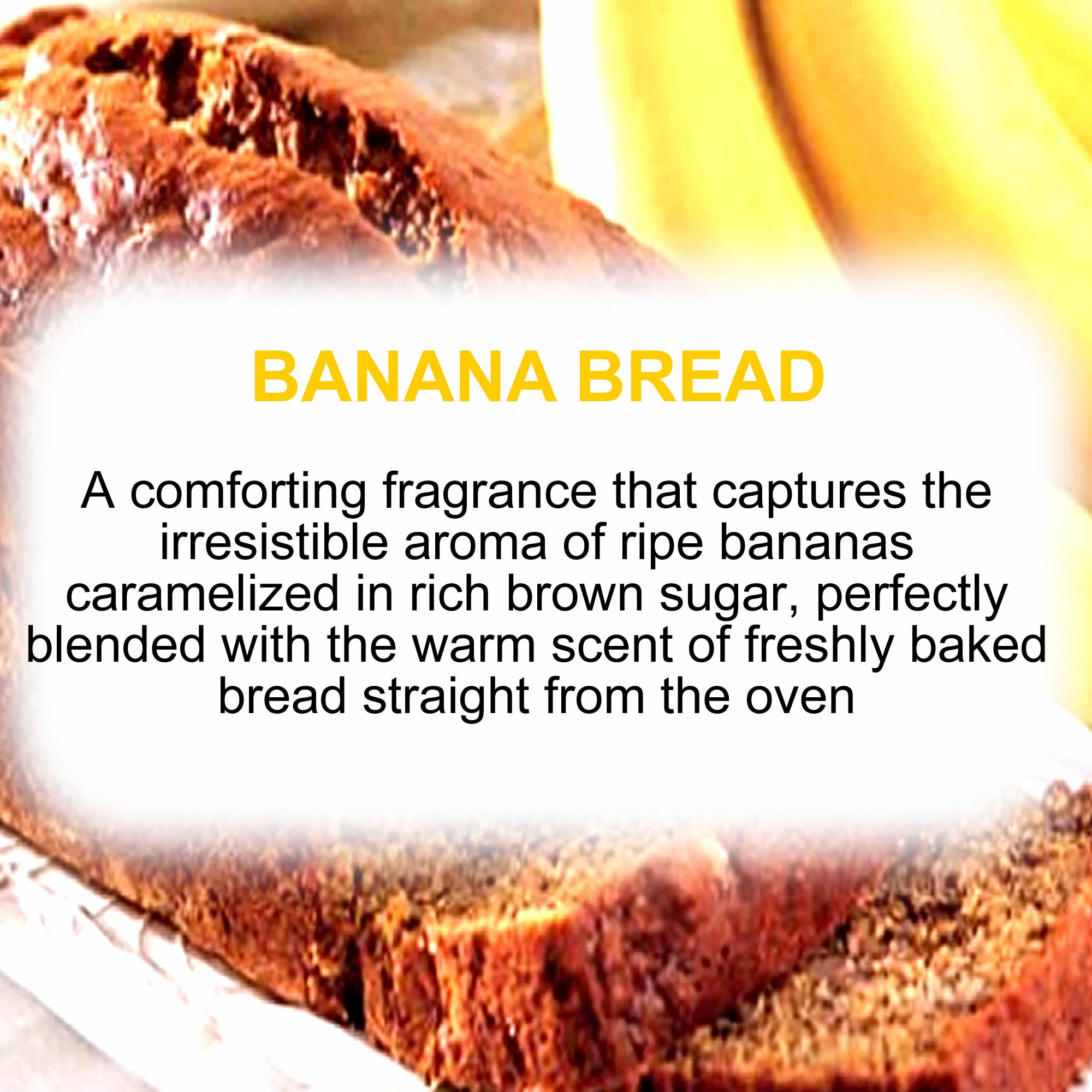 An irresistible, decadent gourmand fragrance that blends luscious, ripe bananas caramelized to golden perfection with rich, buttery brown sugar. Warm, oven-fresh bread notes add a cozy, indulgent depth, creating a deliciously comforting aroma that tempts the senses and wraps you in sweet, sumptuous luxury.
