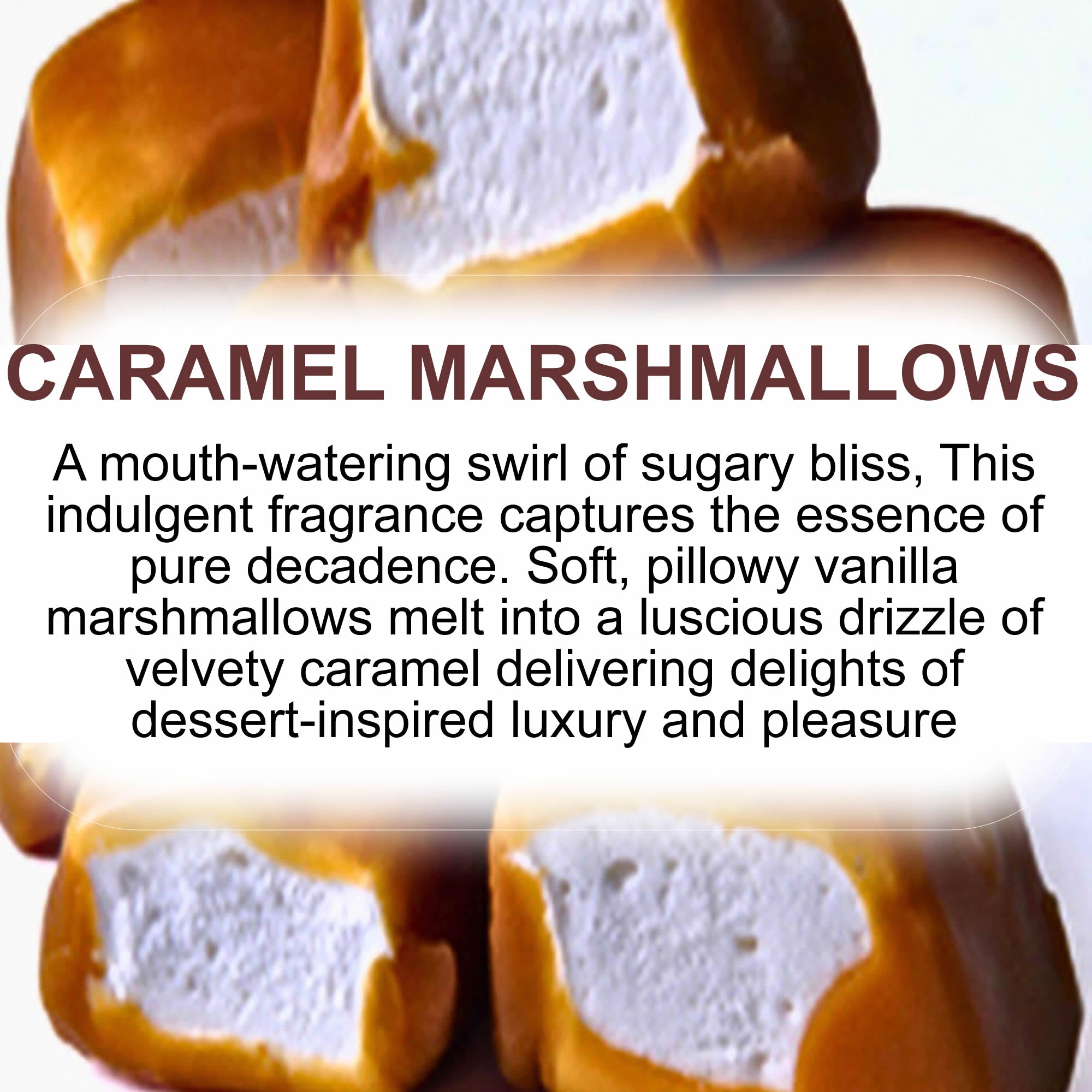 A mouth-watering swirl of sugary bliss, this indulgent fragrance captures the essence of pure decadence. Soft, pillowy vanilla marshmallows melt seamlessly into a luscious drizzle of velvety caramel delivering delights of dessert-inspired luxury and irresistible pleasure