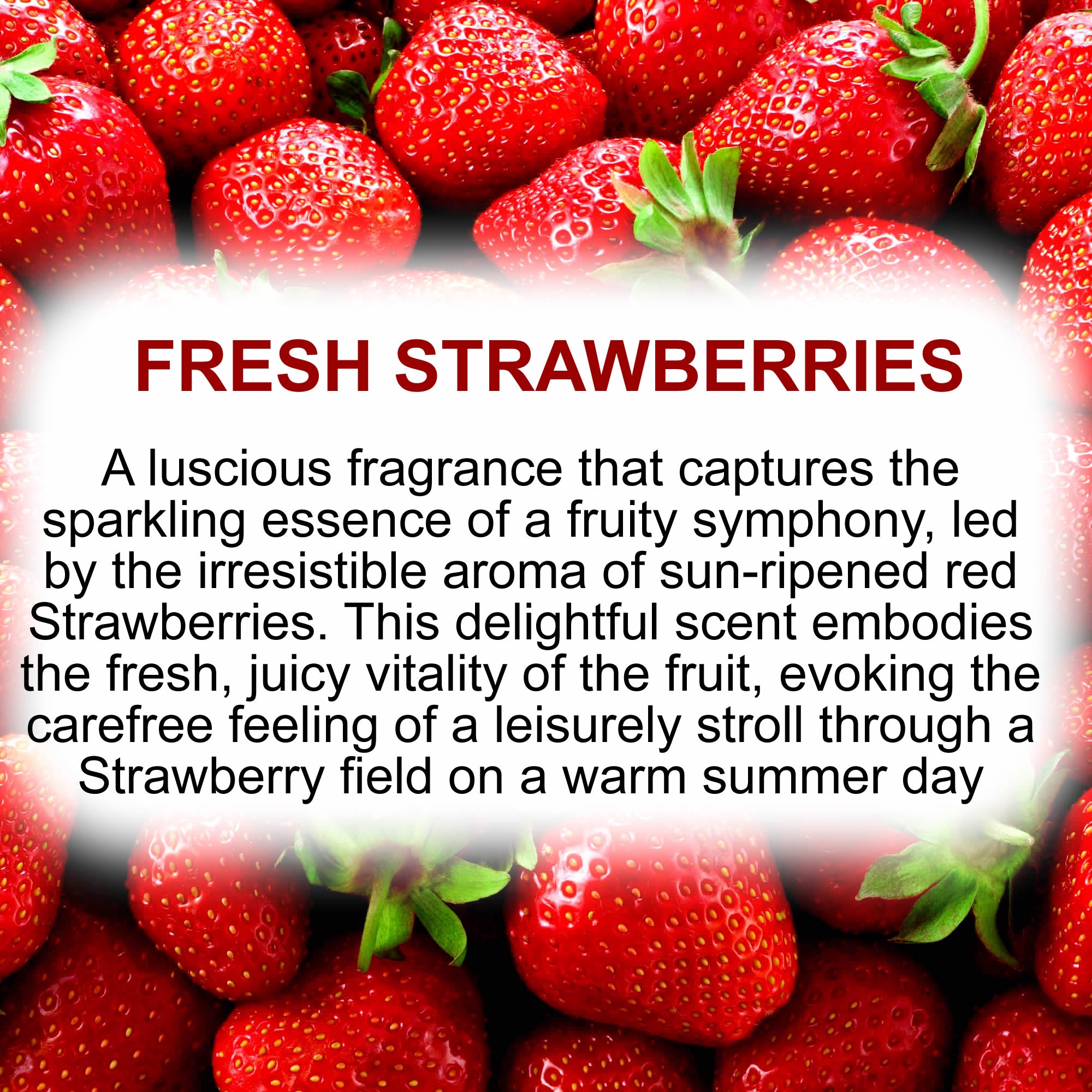 A luscious fragrance that captures the sparkling essence of a fruity symphony, led by the irresistible aroma of sun-ripened red Strawberries. This delightful scent embodies the fresh, juicy vitality of the fruit, evoking the carefree feeling of a leisurely stroll through a Strawberry field on a warm summer day