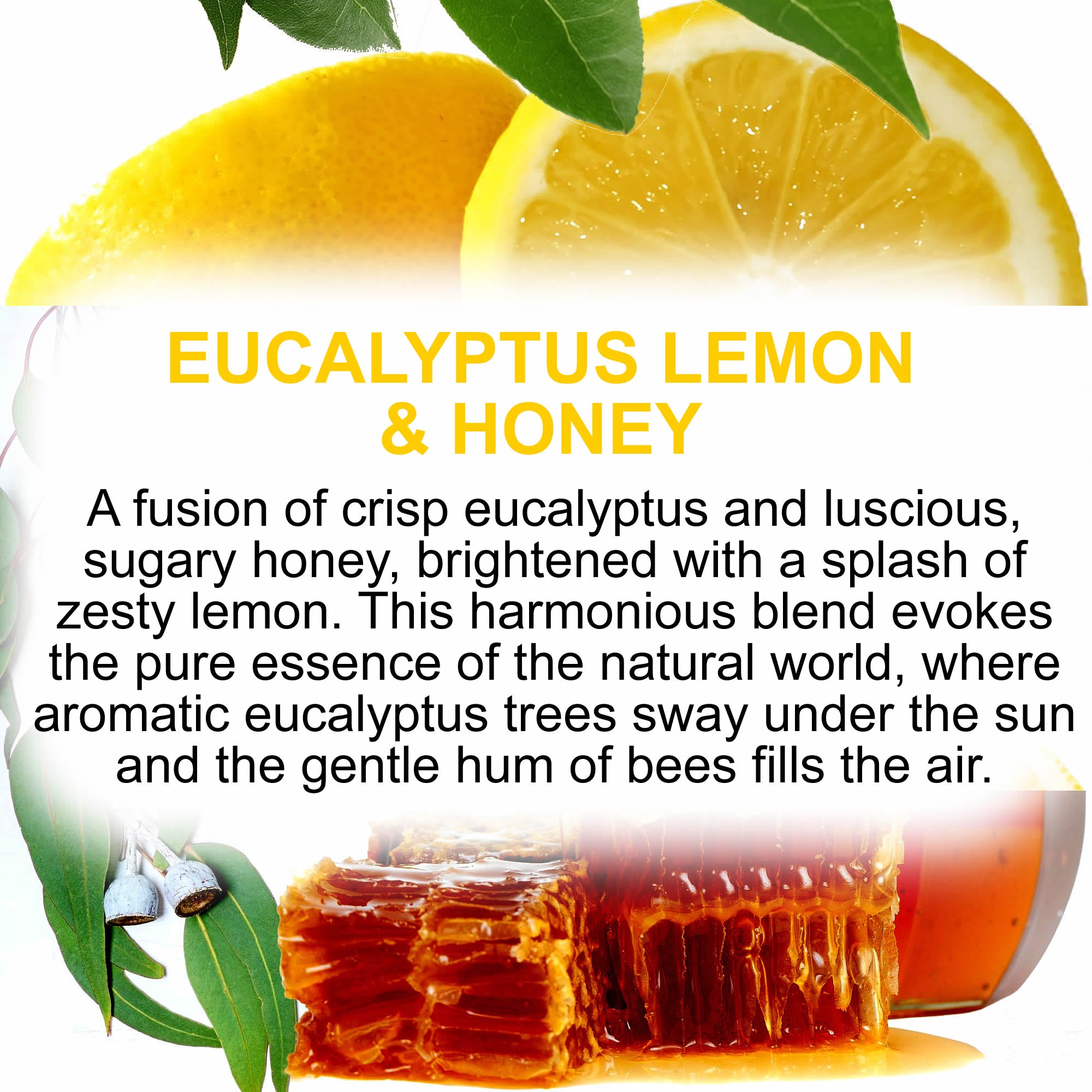 A refreshing fusion of crisp eucalyptus and luscious, sugary honey, brightened with a splash of zesty lemon. This harmonious blend evokes the pure essence of the natural world, where aromatic eucalyptus trees sway under the sun and the gentle hum of bees fills the air. Breathe deeply and be transported to the heart of the Australian outbackโ€”clean, vibrant, and perfectly balanced